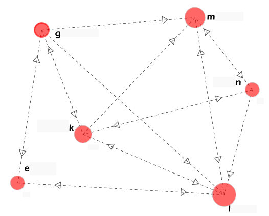 For example, here is a possible graph of such a network involving partipants m, l, g, k, e, and n, choosing 2, 3, 4, 4, 2, and 3 proxies respectively (the arrows). For instance, m and n each chose the other, among others, as one of their proxies. g chose m, l, k, and e, and the latter two chose her. The size of each circle represents their influence, and is a function of the incoming arrows. If k doesnt vote, her influence moves to g, n, m, and l. If only two vote, they still represent the rest of the network meritocratically. This can scale to much larger networks, millions in fact. (see www.arxiv.org/abs/cs.CY/0412047)